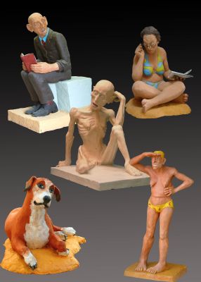 Ces sculptures en terre cuite font partie d'une série intitulée « Méditerranée mon amour », présentant plusieurs personnages intrigués par quelque chose. Le point central est "La Méditerranée", figure allégorique inspirée de la Méditerranée du sculpteur Aristide MAILLOL, en version décharnée, malade, violée et amputée. Une vision très noire de notre belle Grande Bleue.