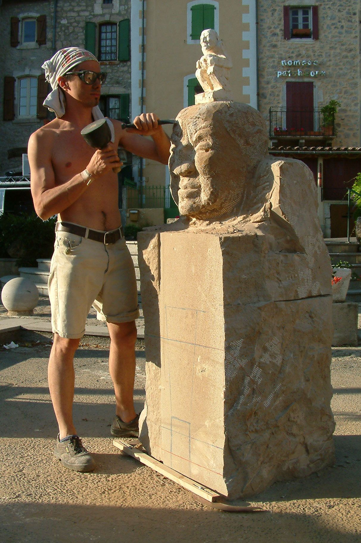 Sculpture en grès réalisée durant le symposium 2004 de Le Caylar, du 24 juillet au 31 juillet 2004.